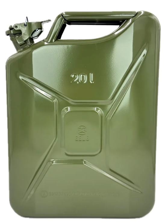 Fully paint-coated inside and outside. Have a full, internal breather pipe for splash-proof pouring. The highest quality Jerry can out there. Original Mil Spec GELG manufactures these jerry cans for NATO militaries.