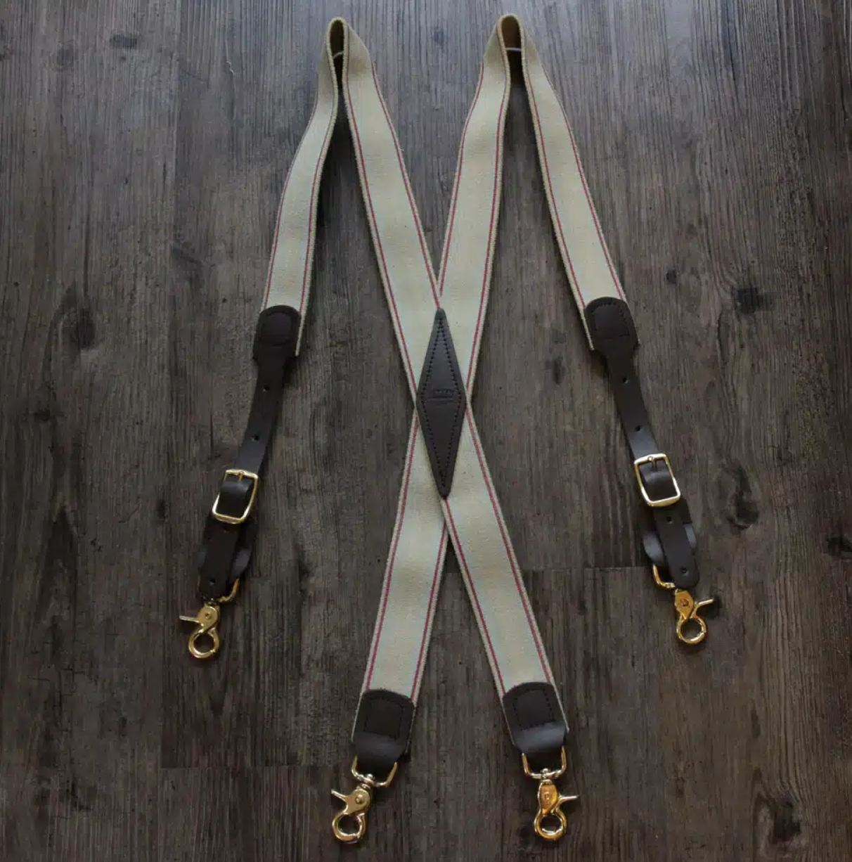 High quality leather and industrial grade elastic combine to make a strong/rugged suspender. The red and black ones are not as stiff elastic-wise as the tan ones. American made in Oregon.