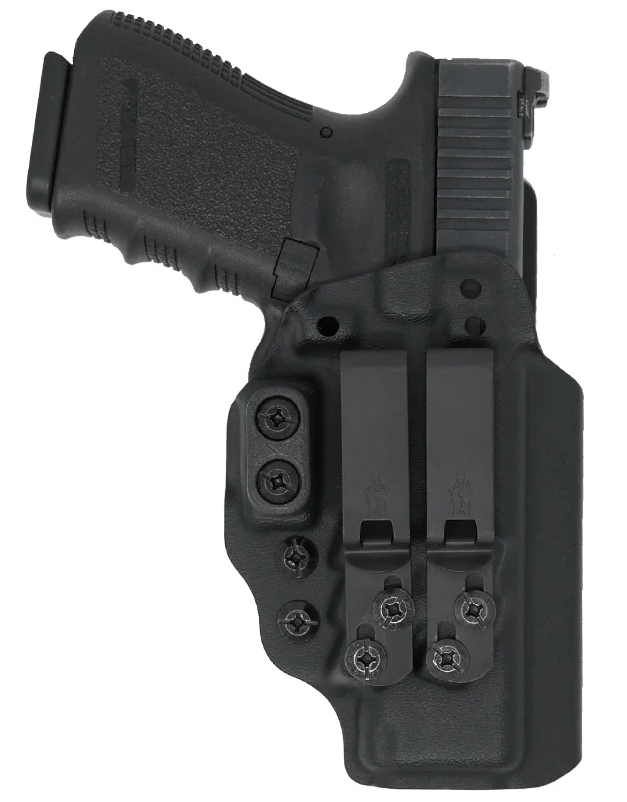 High quality US made thermoplastic based holsters. Dual tension screws allow for adjustments. They have OWB, IWB, AIWB, and flashlight compatible options.
