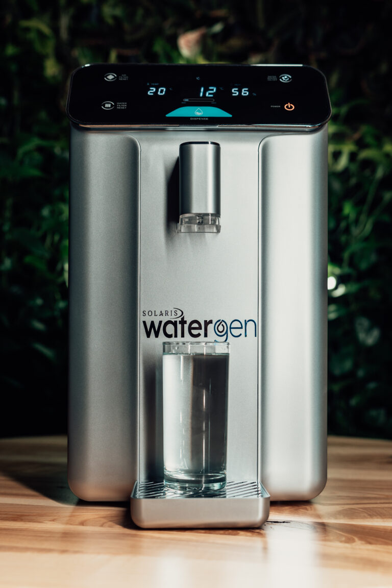 Atmospheric water generator. Generates up to 10 liters of water per day at 35-80% humidity and uses 200 watts. Only downside is that it is loud.